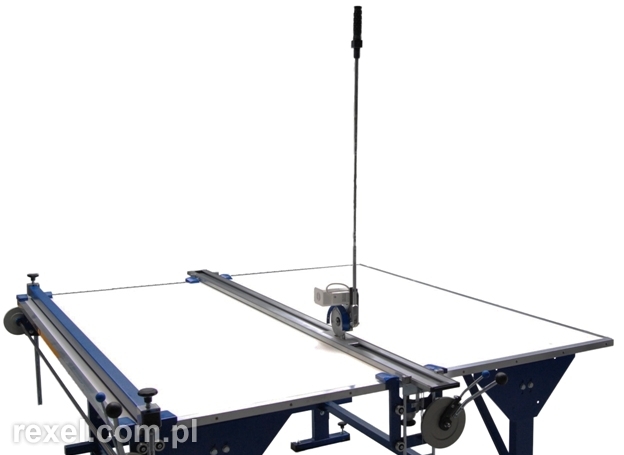 Die Arbeit mit unseren manuellen Abläng-Schneidemaschinen, oder auch manuelle Stofflegevorrichtung mit Abschneider genannt, wird durch zwei Halteschienen erleichtert.